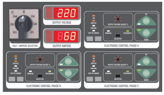 VOLMATIC Voltage Stabilizer Series, is a voltage regulator that due to its construction simplicity, reliability and robustness has been able to last the passage of the years. The latest technical improvements, both electrical as well as mechanical have been incorporated in this new digital generation.